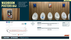 Classic print posters placed at clearly visible intervals around the washroom walls and cubicles. |